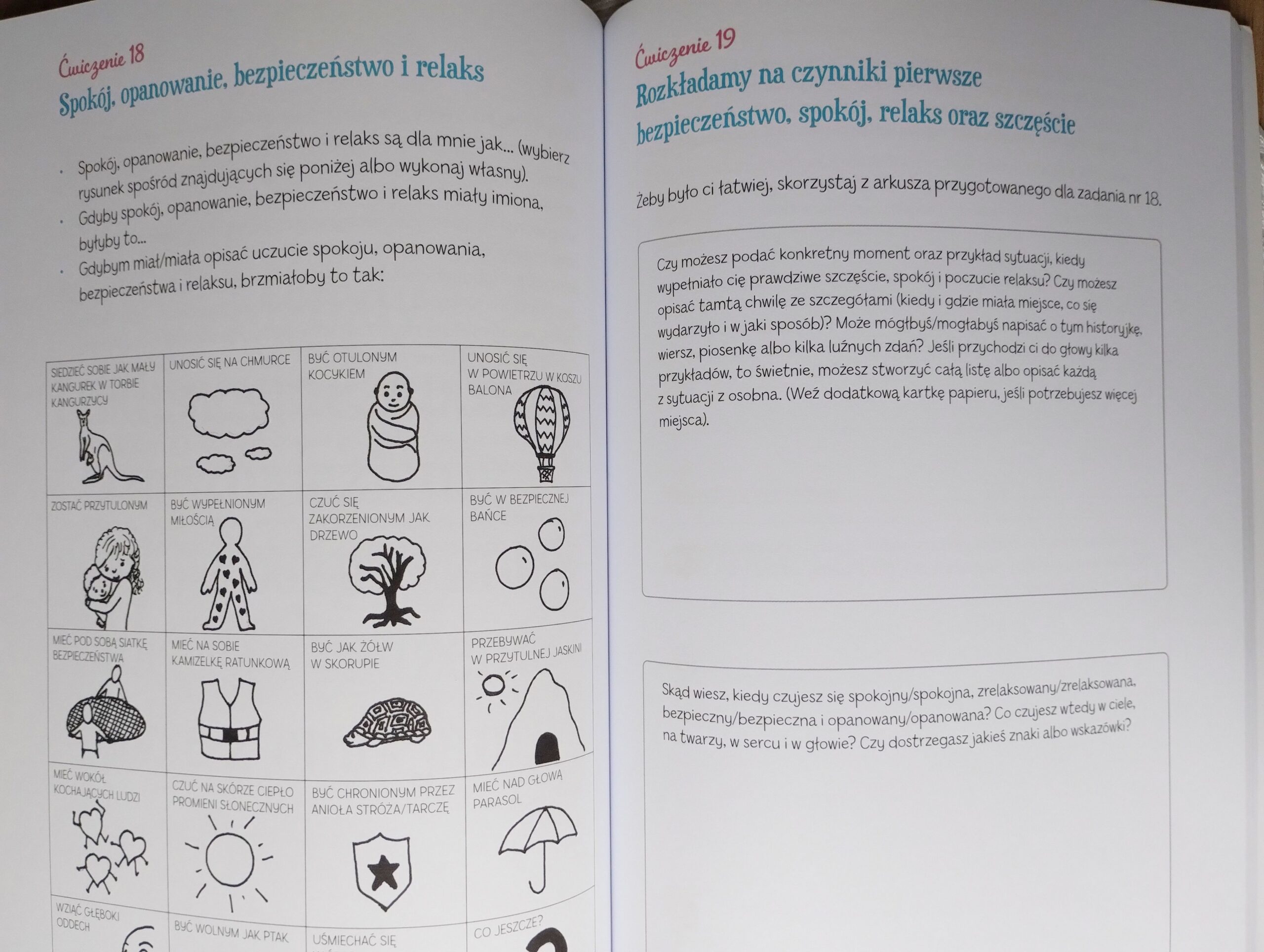 Ważną częścią podręcznika są: „Metody relaksacyjne, sposoby na znalezienie swojego bezpiecznego miejsca i radzenie sobie z emocjami”.