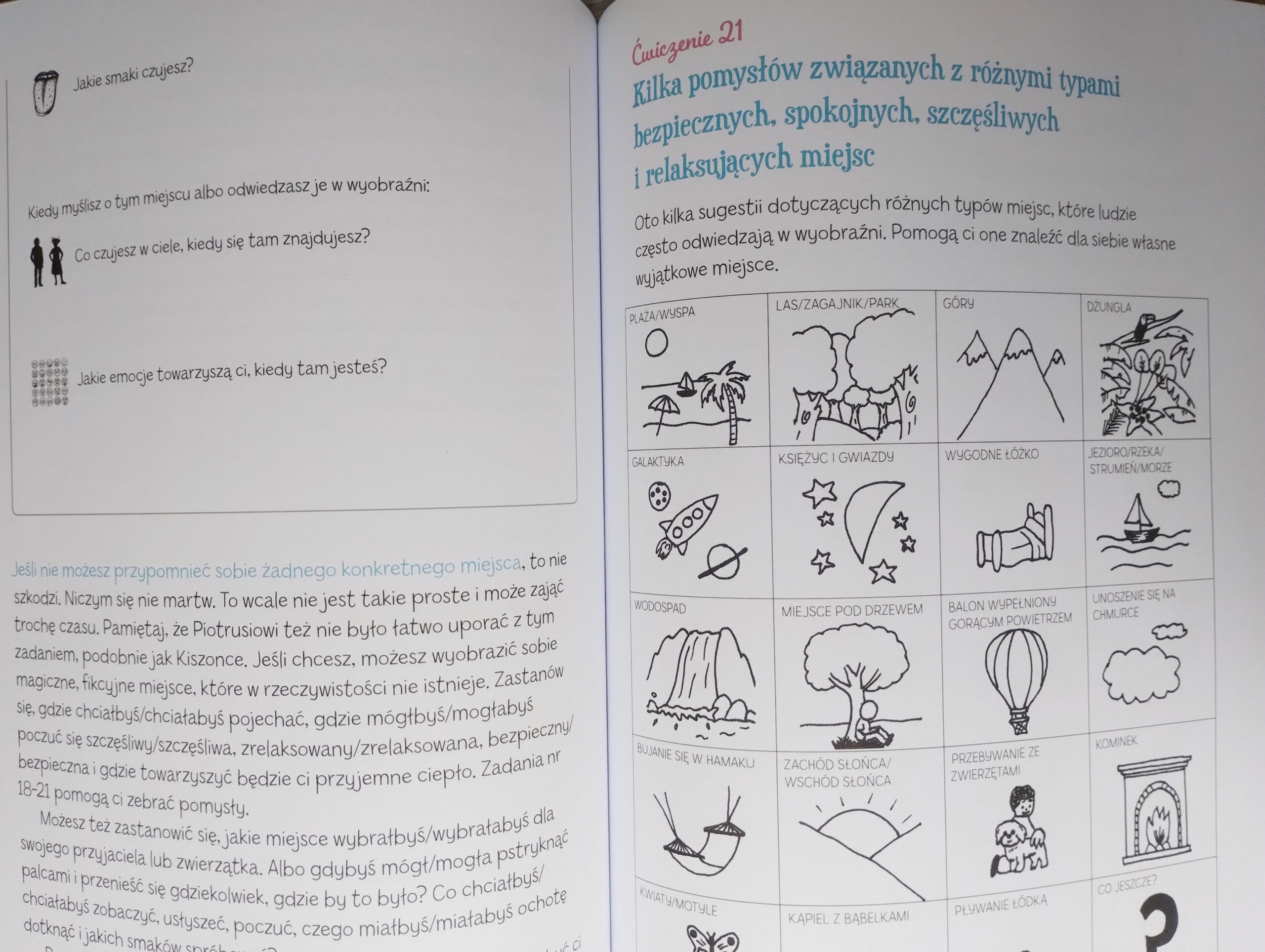 - Ćwiczenie wspierające dziecko w stworzeniu własnego bezpiecznego miejsca oraz grafiki służące za inspirację.