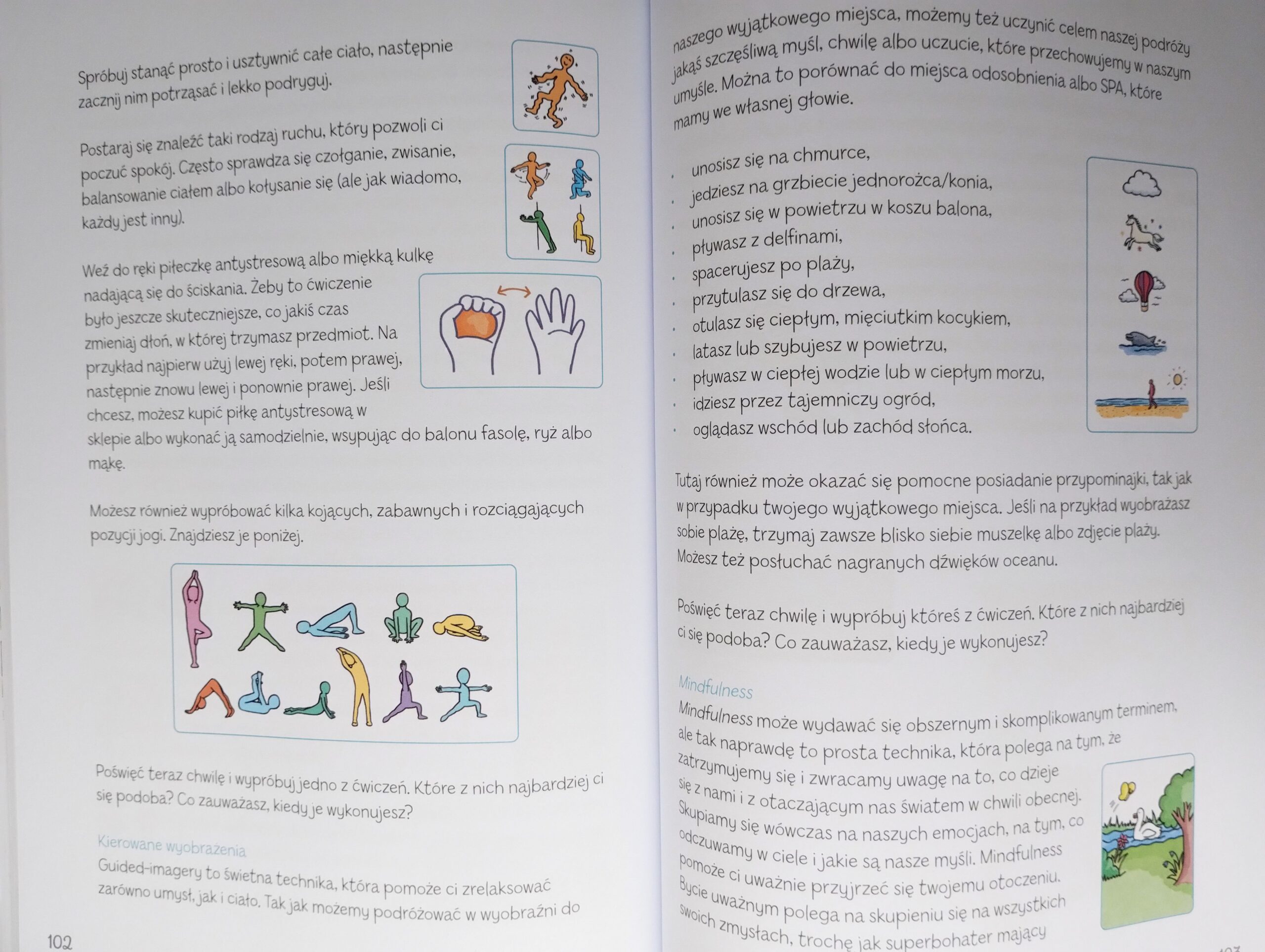 - Sześć stron wypełnionych inspiracjami na temat ćwiczeń oddechowych i relaksacyjnych.