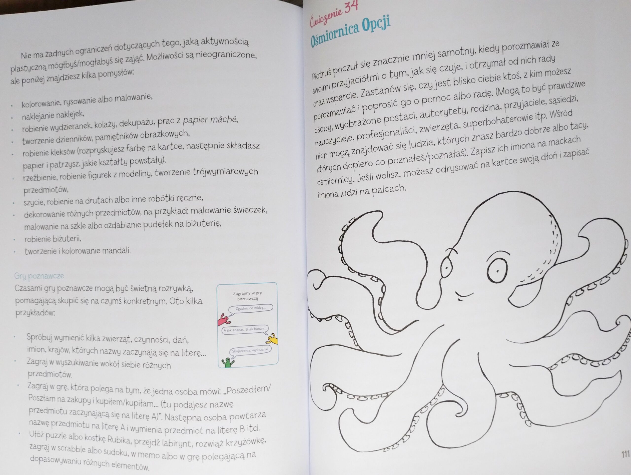 - Zawiera „Instrukcję obsługi książki”, w której autorka zamieściła nie tylko wskazówki dotyczące korzystania z książki, ale również elementy cennej psychoedukacji oraz inspiracje do pracy z dzieckiem