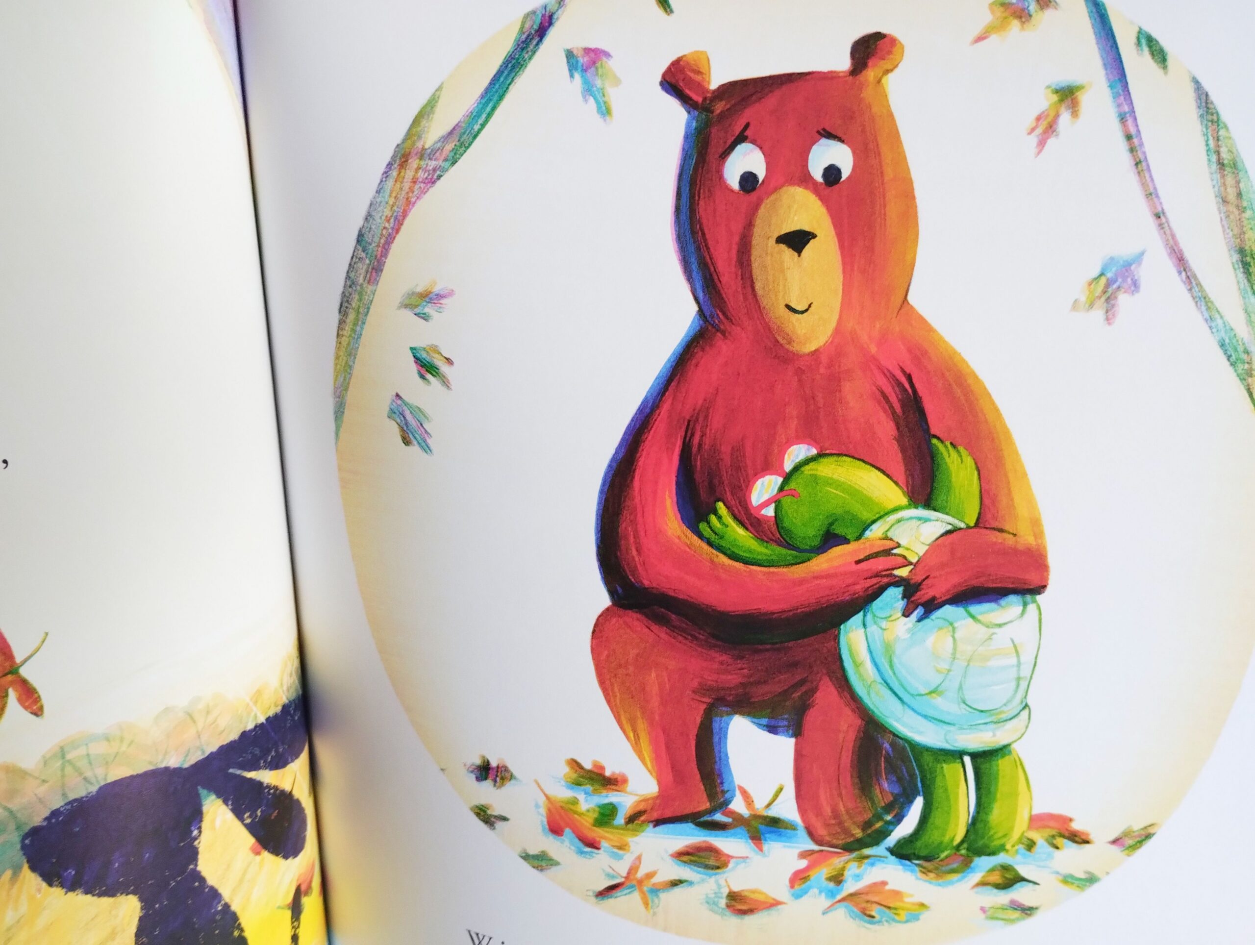 I wtedy pojawia się mądra niedźwiedzica Gerda, która „nie bała się smutków i kłopotów, więc czekała przy nim, aż sam będzie gotów”. Przyjęła smutek żółwika i otuliła go.