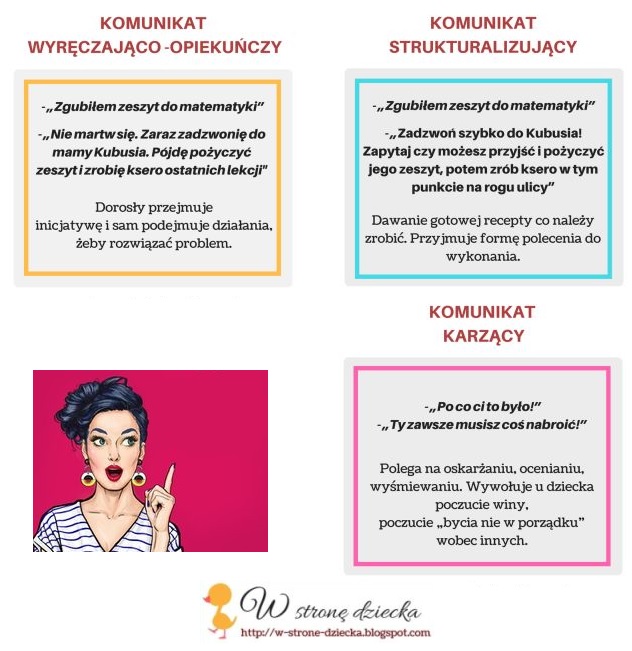 W przypadku małych dzieci pomocny może być komunikat strukturalizujący, który pomaga uporządkować sytuację i wyznacza zadania do wykonania. Należy jednak zachować czujność, ponieważ jego wyłączne stosowanie może prowadzić do obniżenia u dziecka poczucia własnej wartości. Nisko będzie oceniać swoje możliwości, jeżeli uzna że „mama zawsze wie lepiej”.